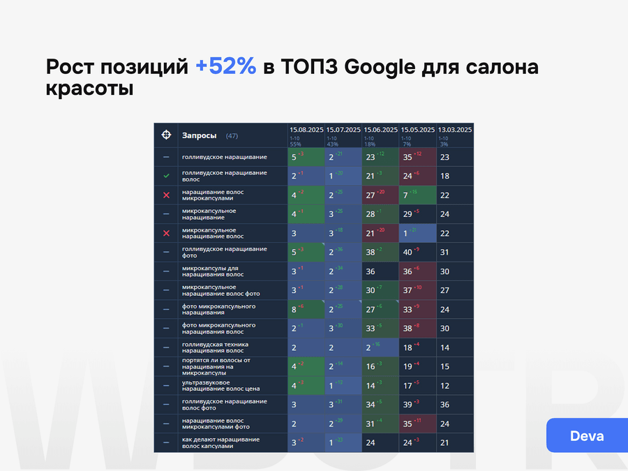 Кейс DEVA: 60 заявок в месяц из органики и 0 ₽ затрат на контекст