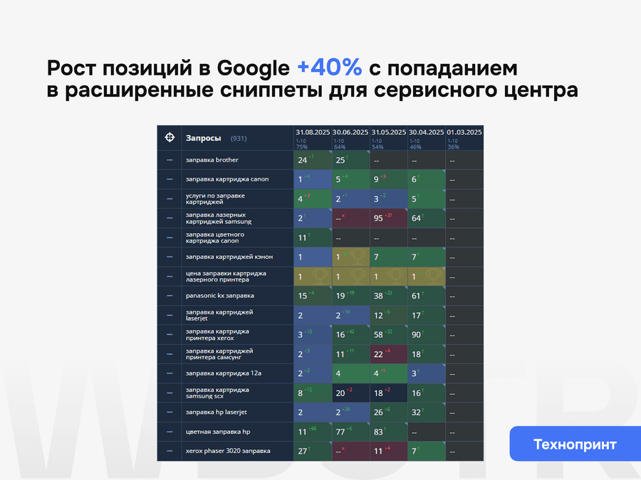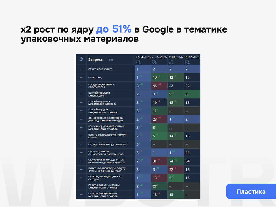 • Срез ваших текущих позиций в сравнении с конкурентами из ТОП5